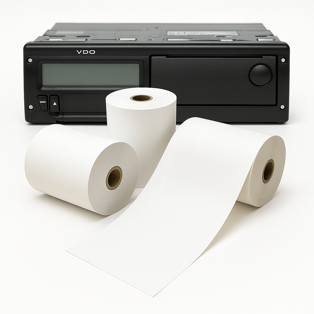 Rollo de papel térmico de alta calidad, especialmente diseñado para impresoras de tacógrafos digitales. Ofrece una impresión clara y duradera, resistente a la decoloración y conforme a las normativas vigentes. Ideal para registrar y conservar datos de conducción y descanso de manera segura y confiable.